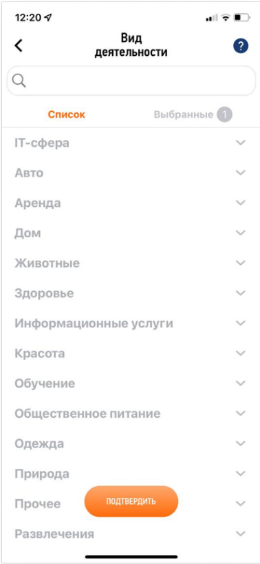 Для этого пройдите по следующему пути: «Прочее» → «Профиль» → «Вид деятельности».